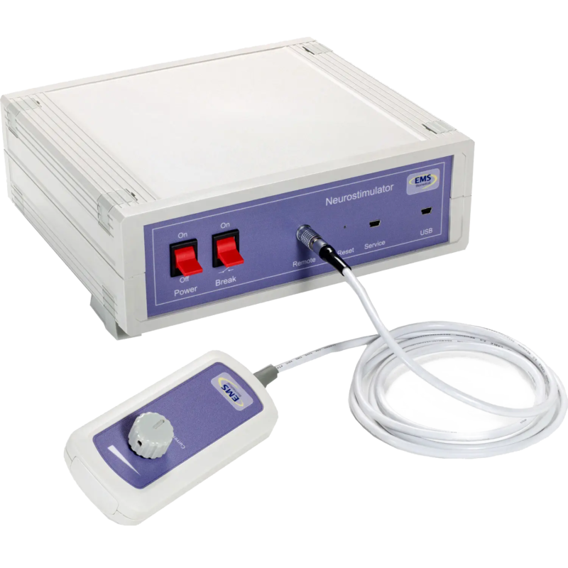 es una unidad independiente, innovadora y multicanal para la estimulación cortical. Se utiliza para la estimulación eléctrica cortical, la estimulación nerviosa directa y la estimulación muscular. El neuroestimulador NEC de EMS es un sistema todo en uno con un estimulador de corriente constante
